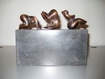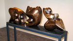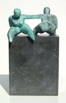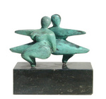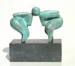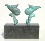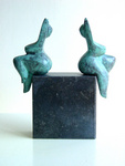 Serie bronzen die meestal met z'n twee samen op een sokkel iets doen!